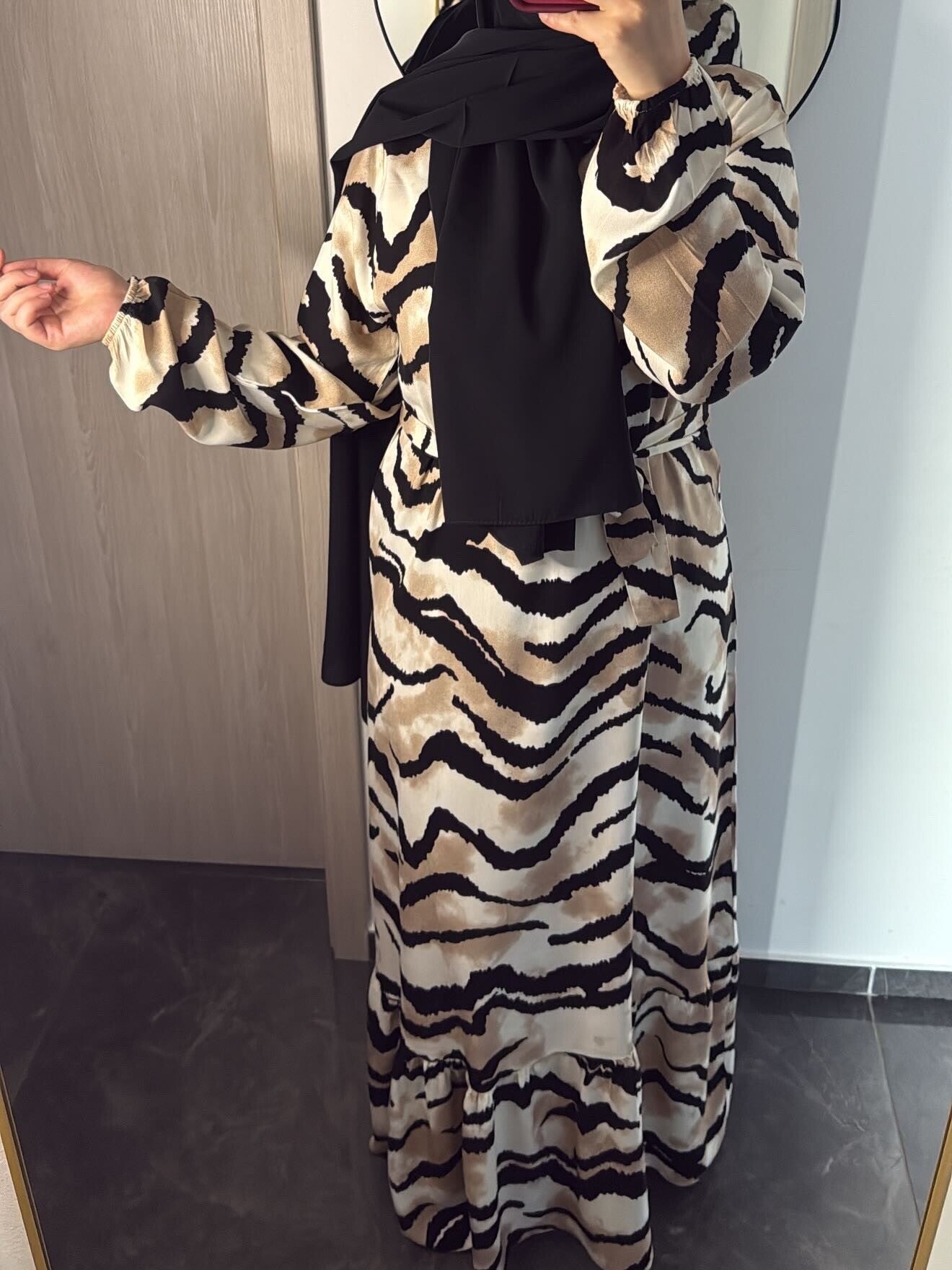 Faites sensation avec cette sublime robe longue à imprimé zébré, alliant élégance et confort. Confectionnée dans un tissu fluide et légèrement brillant, elle offre une allure chic tout en restant très agréable à porter.